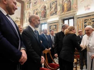 الفاتيكان- نبض الحياة- استقبل البابا فرنسيس ظهر الجمعة منظمي الحفل الموسيقي مع الفقراء الذي سيقدَّم بعد ظهر اليوم. وخلال ترحيبه بضيوفه أعرب الأب الأقدس عن فرحه للقاء جميع مَن تعاونوا من أجل تنظيم هذا الحفل كما ووجه الشكر إليهم. وتوقف البابا بشكل خاص عند التمكن من إشراك أشخاص كثر في الإعداد لهذا الحدث وتنظيم حفل مجاني للآلاف من الأشخاص المعوزين، موفرين هكذا من خلال الموسيقى لحظة لقاء وتقاسم، هذا إلى جانب وجبات الطعام والأغطية، أي ما أراد قداسته اختصاره في كلمة واحدة: الأخوّة. وسلط قداسته الضوء على أن هذا يتماشى بشكل كبير مع رسالة الميلاد.