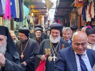 الطيبة - نبض الحياة: استقبلت القدس، بطريرك انطاكيا وسائر المشرق للسريان الارثوذكس الرئيس الأعلى للكنيسة السريانية الارثوذكسية في العالم أجمع مار اغناطيوس افرام الثاني، بحضور ممثلين عن الرئاسة الفلسطينية ورؤساء الكنائس وبمشاركة جمع غفير من أبناء الكنائس وأهالي المدينة.