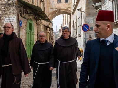 ومنذ عام 1333، وعلى مدى نحو سبعة قرون، يحافظ الرهبان الفرنسيسكان على ذكرى أماكن الخلاص. وبموجب تفويض من الكرسي الرسولي منذ عام 1342، حين طلب البابا كليمنضوس السادس رسميًا «الإقامة في الأماكن المقدسة والاحتفال فيها بالقداديس والصلوات الليتورجية». وهذا بالنسبة لنا، نحن الفرنسيسكان، امتياز نصونه بعناية وشرف يمنحنا القدرة على مواجهة الصعوبات والتحديات في أرض قدّسها حضور الله، لكنها ما تزال مجروحة بفعل النزاعات والتوترات.